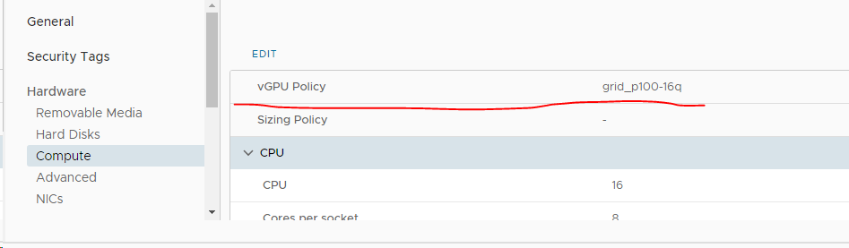 У вас на ВМ, к которой подключена карта появляется строка vGPU Policy